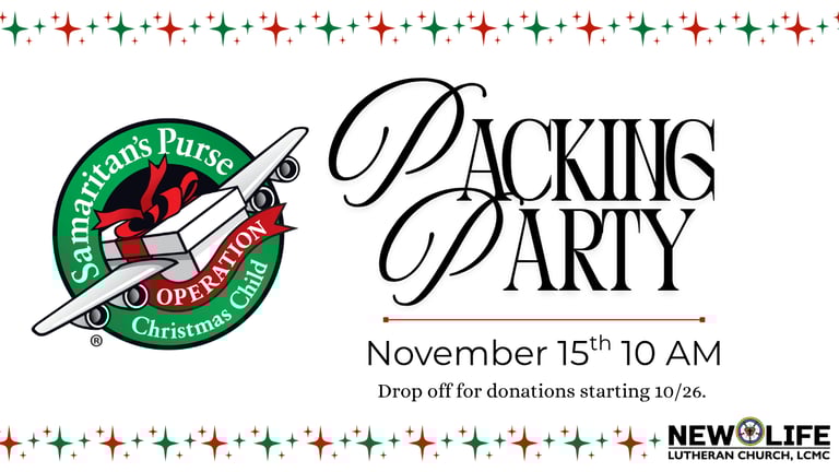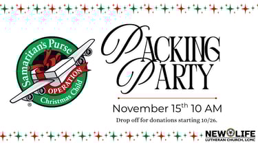New Life will be having a Packing Party for Operation Christmas Child shoeboxes this November.